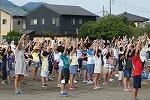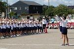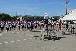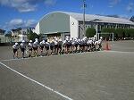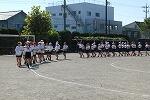 各育成会ごとに集合して整列し、あいさつの後、運動委員児童を手本として、ラジオ体操第1と第2を行いました。