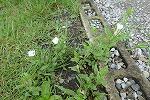 職員室前の芝生に咲くアカバナユウゲショウの赤花と白花。