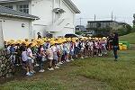 今朝は、小雨が降る中での登校でした。