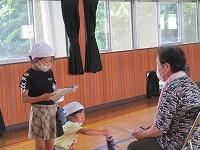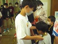 6年生は、2~6年生の代表として1年生にメダルを渡しました。
