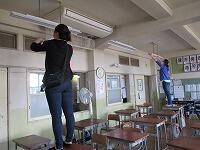室内では、冷房機の清掃や、窓ガラス、トイレなどの清掃など、普段子どもたちの手に届かないところも、ピカピカにして下さいました。