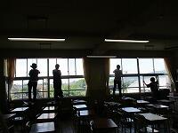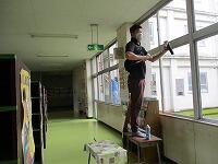 昇降口の窓も、体育館の窓も、その他の窓もみんなピカピカです。