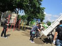 主に、側溝掃除や砂場の砂入れなどは男性の方が、室内清掃や除草は女性の方が作業してくださいました。