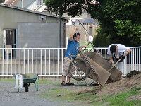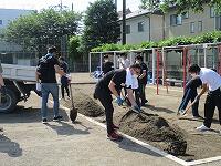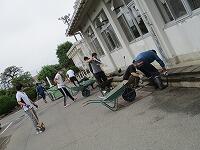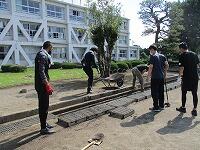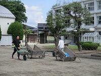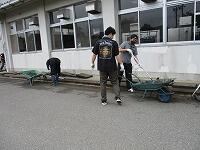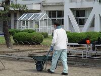 校庭では、トラックに積み、運ぶのも、砂をならすのも、やってくださいました。