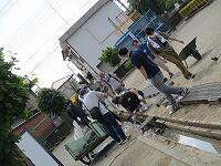側溝からかきだした泥などは、一輪車などで、泥を置く場所へ運んでくださいました。