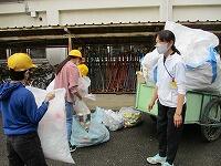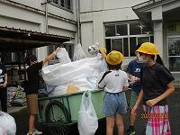 ボランティア委員会が、頑張ってアルミ缶をまとめ、運んでくれました。