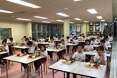 栄養教諭の臼井先生が、担任の先生と一緒に、6年生に家庭科で給食リクエスト授業を実施してくれました。