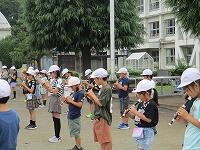 秋晴れの空の下、校庭に「青と夏」の演奏が響き渡りました。