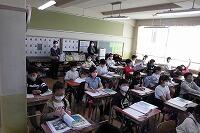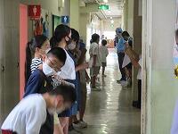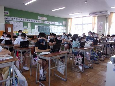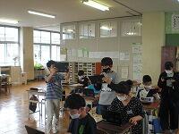 オンラインでの健康チェックにより、スムーズに教室へ入れるようになり、密になるのが解消されています。保護者の皆様の御協力,ありがとうございます。