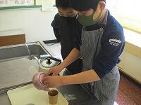 おいしいお茶を入れようと一生懸命集中して頑張りました。