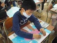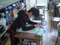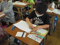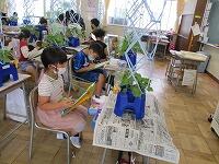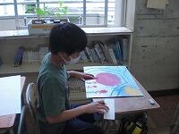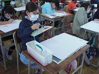 1組は、図工の「季節を感じて」の続きの作業です。
