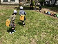 アスレチック広場では、クローバーをつんだり、虫探しに夢中になったり・・・