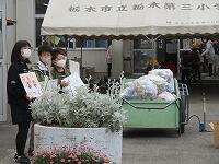 運営委員会の児童が挨拶運動を、ボランティア委員会がアルミ缶回収を頑張っています。