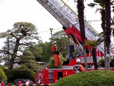 次は、、子供たちのお待ちかね、はしご車による救出訓練です。