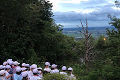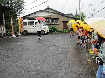 小雨の中の出発式です。この後はやむ予定です。元気に行ってきます。