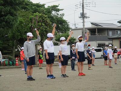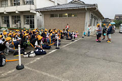 3~6年生の登校班長さんが、6年生の代わりに、しっかり班を並ばせていました。