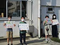 運営委員が、小雨の中でも、朝の挨拶運動を、意欲的に頑張っています。