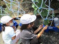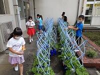 2年生、野菜の世話を頑張っています。