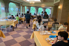 朝食の様子。朝からお代わりする子がたくさんです。