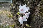 校地内には、昨日の季節外れのあられに耐えたサクラや、散らされて流れ集められたピンクの絨毯が見られました。