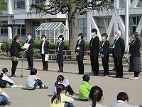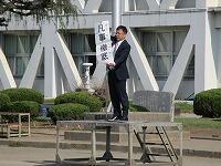 学校では、令和元年度の最終日を迎え、在校生や卒業生が登校して、離任式を校庭で行いました。