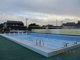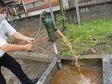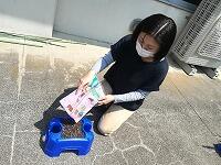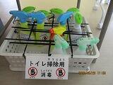 ビート板を使ったあとは、たらいに次亜塩素酸ナトリウムを入れて、1枚1枚消毒しています。