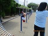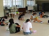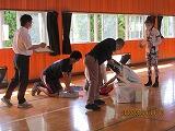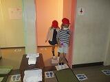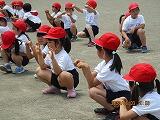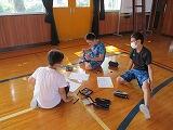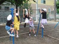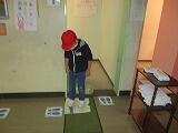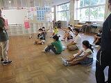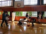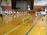 平均台を、横向きで歩くのはなかなか難しいです。平均台から落ちないように慎重にバランスをとって歩いています。集団のきまりを守って、取り組んでいます。