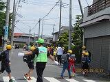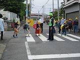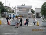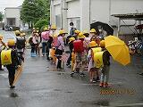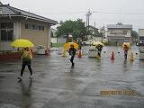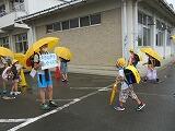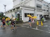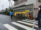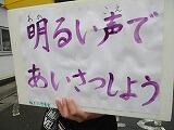 雨の中、運営委員の呼び掛けで、あいさつが広まっています。