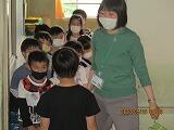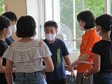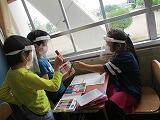 マスクでは、発音がわかりにくいですが、フェイスシールド越しのセーラ先生の口の動きをよくみて、真似することで正しく発音できるようになっています。