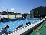 今日も雨模様でしたが、午後、雨が上がり、5年生がプールに入りました。