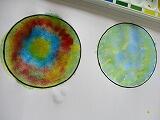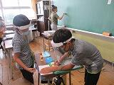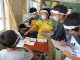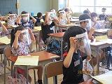 フェイスシールドをして,友達の作品の鑑賞をしています。