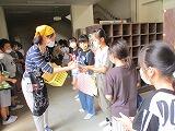 運営委員会の児童が、学校にあいさつを広めようと、あいさつ運動を始めました。