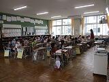 続いて始業式。新担任紹介や児童の作文発表、校長先生の話を聞きました。