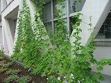 スクールガードリーダーの中田様にいただき、玄関前ロータリー花壇に植えた皇帝ダリア。しっかり根付き、大きくなってきました。