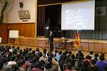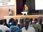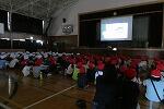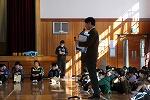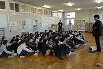 栃木市交通防犯課から4名の方にご来校いただき、体育館でアニメ動画により、
