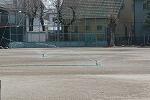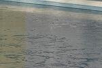学校のプールでは、低気温の日が続いた結果、水面が初めて凍結していました。