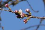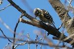岩石園のソメイヨシノで、餌をついばむコゲラ(キツツキ目キツツキ科)に出会いました。