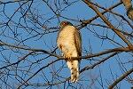 先週の土曜日の朝、校庭巡回中に、校舎西のエノキにとまっている猛禽類ハイタカ(タカ目タカ科)と出会うことができました。
