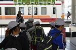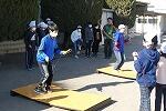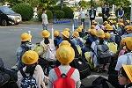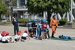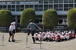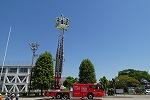 栃木消防本部から、はしご車と8名の方々にご来校いただき、給食調理室からの出火を想定した校庭への避難後、