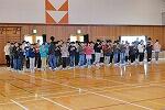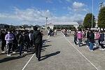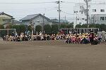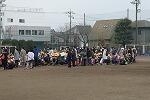 駐車場には、大会に出掛ける前の栃三バレーボール部の子どもたちと保護者の方々が集合していました。