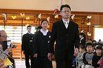 国歌斉唱の後、児童代表として2人の1年生が、新年や新学期の抱負を発表してくれました。
