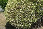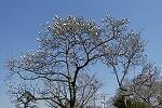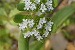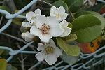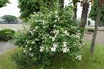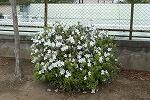 通用門脇に咲くマルバシャリンバイ(バラ目バラ科)の白い花。