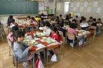 学校では、上学年による朝の陸上練習から始まり、1年生においては、初めての通常日課5時間を過ごしました。給食の配膳がいつの間にか上手になっている姿に、担任も驚いていました。2~6年生は、さらに6時間目までの日課でした。
