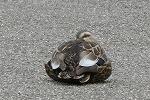校庭南側のソメイヨシノのくぼみに棲むヨコヅナサシガメ(カメムシ目サシガメ科)とその抜け殻。