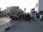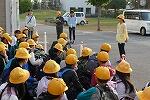昇降口前で出発式を行い、バスに乗って出掛けていきました。