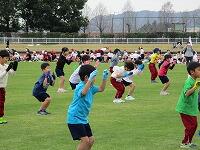 アスレチック広場付近では、6年生が頑張っていました。走り終わった後は、しっかり整理運動。