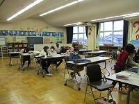 東中の先生からは、オールイングリッシュで部活動の紹介もあり、みな真剣に聞き入っていました。学習した英語を使って、先生と交流もすることができました。