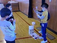 試行錯誤しながらつくったおもちゃを1年生に楽しんでもらえるようにと、やさしく説明したり、一緒に喜んだりしている2年生たちは、お兄さん、お姉さんの顔でした。