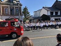 11月6日日曜日、秋晴れのもと、消防団分列行進に,本校6年生が参加し、鼓笛隊演奏しました。