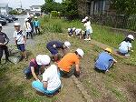 1・2年生は、校庭の石拾い。3~6年生は、花壇や学年花壇、中庭などの草むしりを行いました。